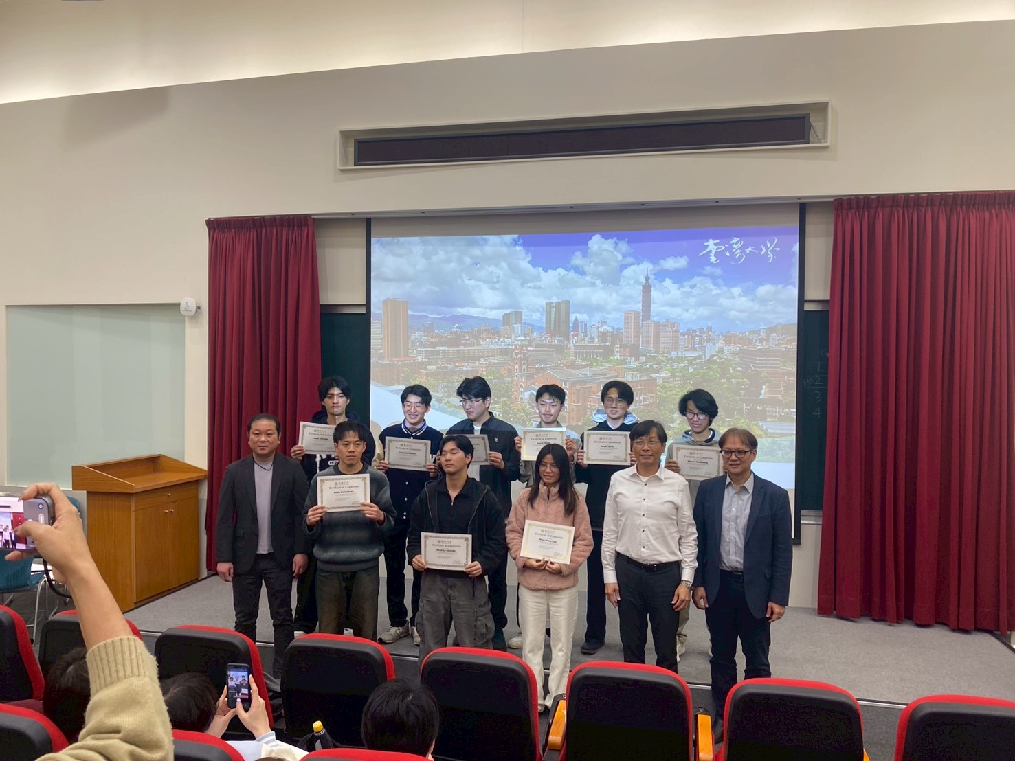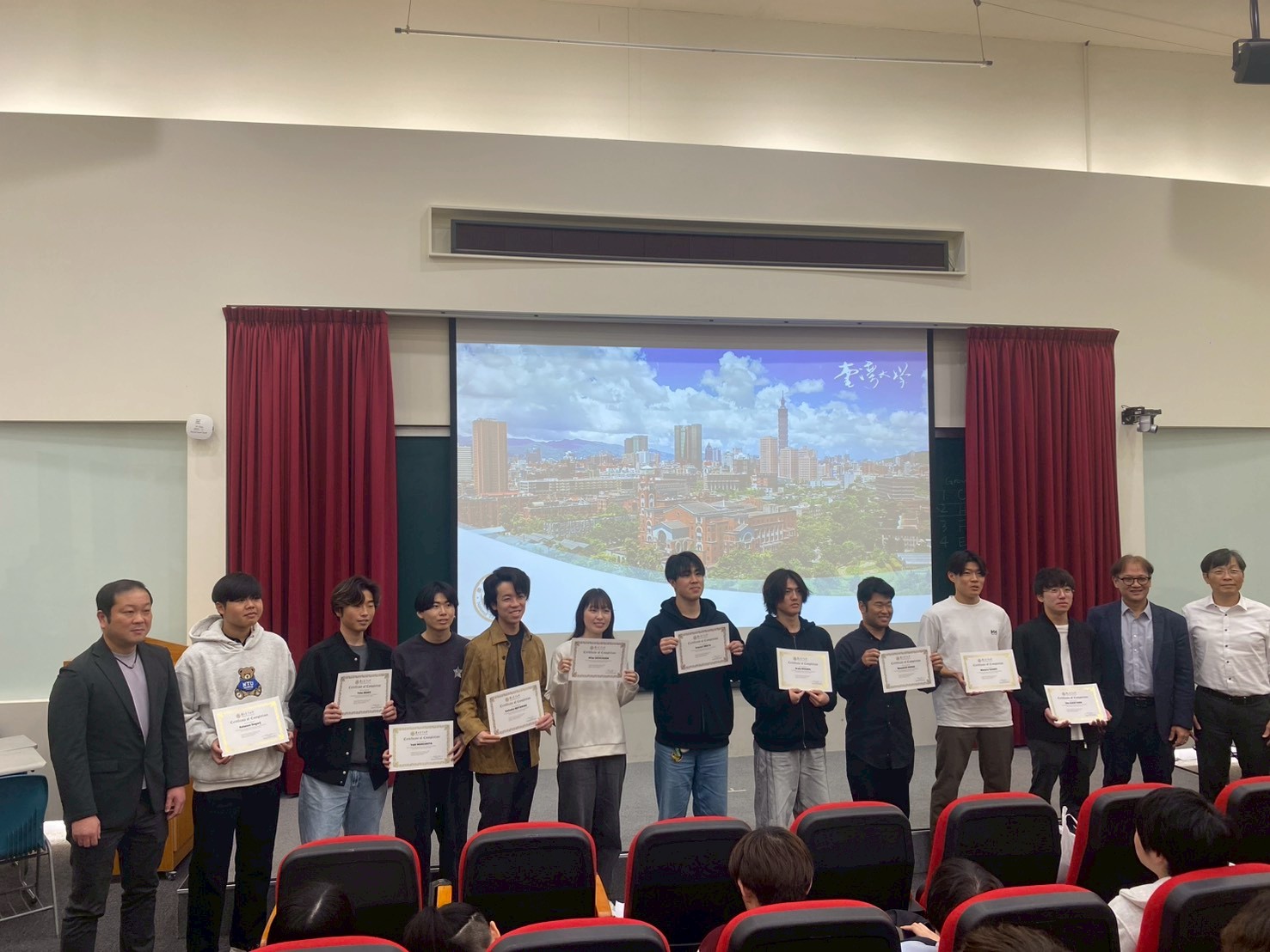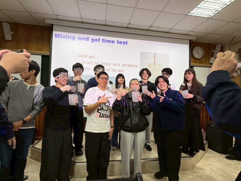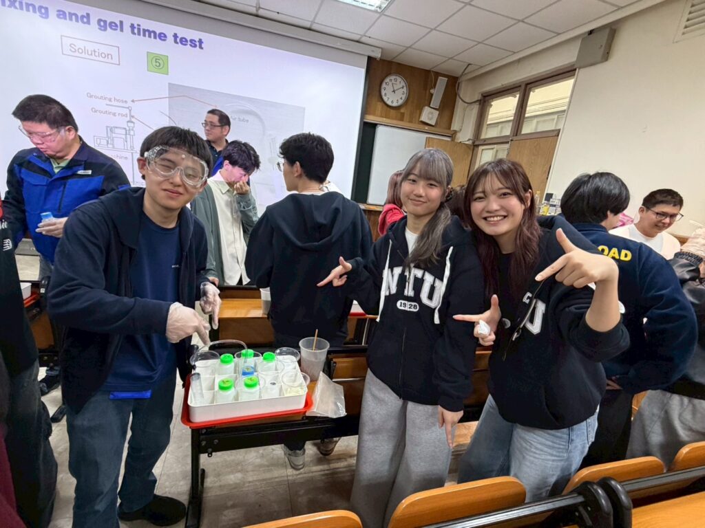 また、NTUの博士課程学生やポスドク研究員による研究紹介、企業技術者による実務講演も行われ、防災・地盤・構造・水工学など幅広い分野の最新の取り組みに触れる機会となりました。期間中には計8回のグループワークが実施され、学生たちは異なる専門や文化的背景を持つ仲間と議論を重ねながら課題解決に取り組みました。最終日には英語によるプレゼンテーションが行われ、日・台・泰の教員や実務者の前で成果を発表しました。