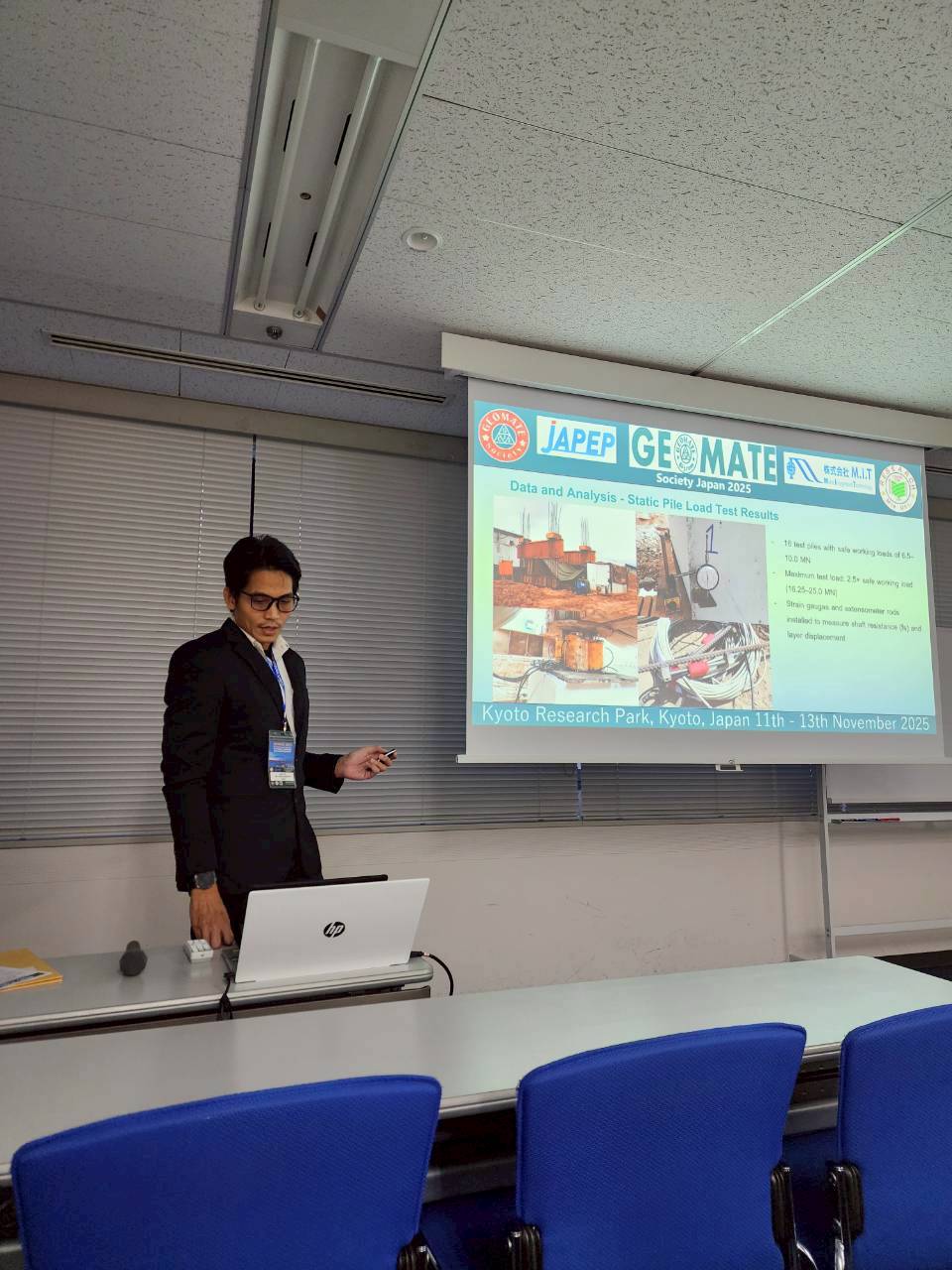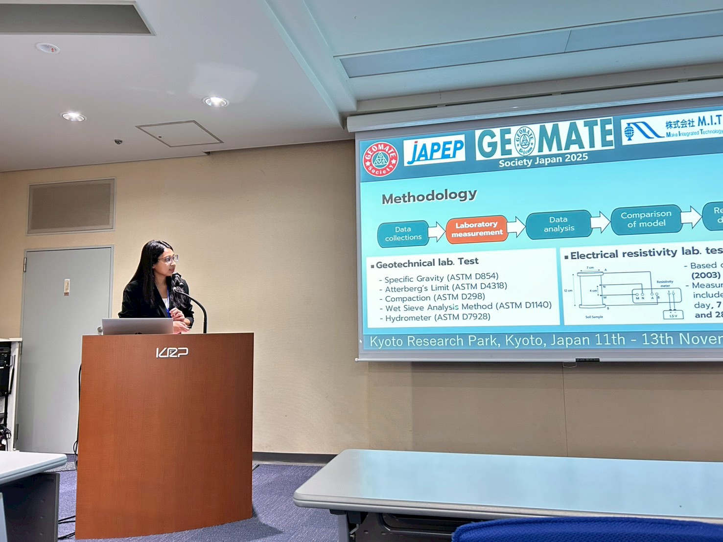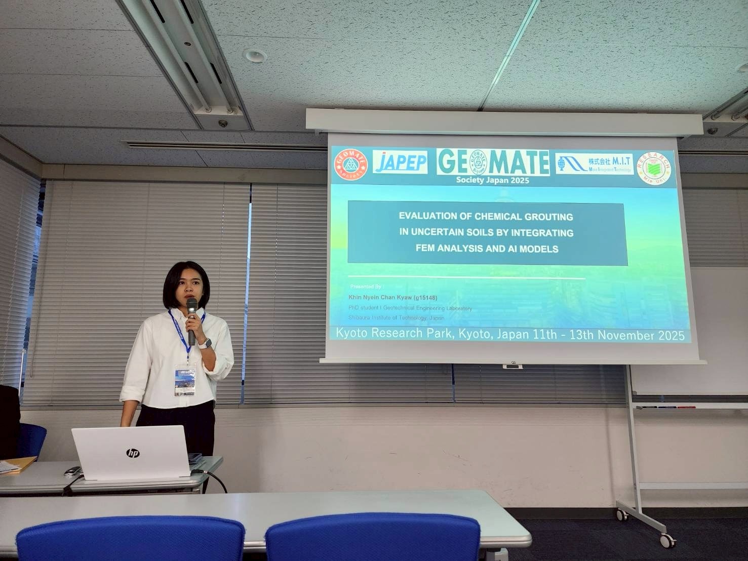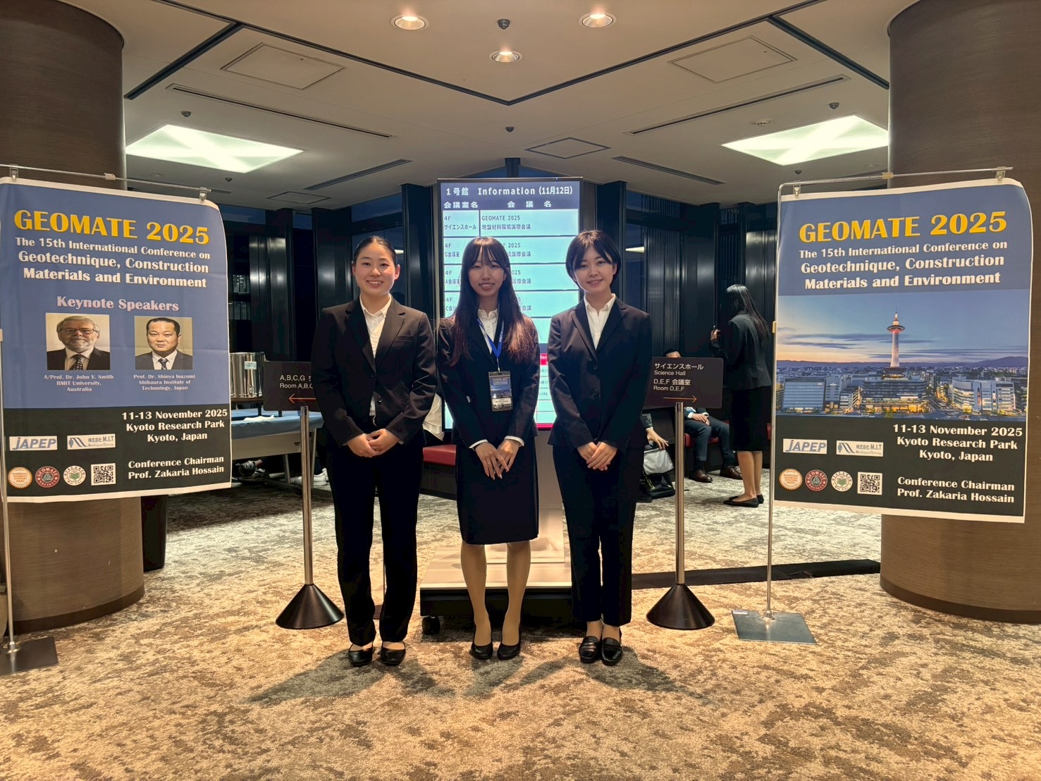 Fourteen graduate and undergraduate students from our GEL-SIT, eight doctoral students, five master’s students, and one undergraduate student, are participating in the international conference “GEOMATE 2025” (November 11-13) held at Kyoto Research Park, delivering oral and poster presentations.